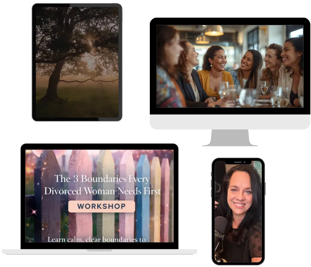 Now, I help women stop living in the emotional leftovers of their divorce. Through my book, coaching, live retreats, courses, my podcast, and resources designed for real life, I support women who are ready to stop shrinking, stop second-guessing themselves, and start building a beautiful next chapter.